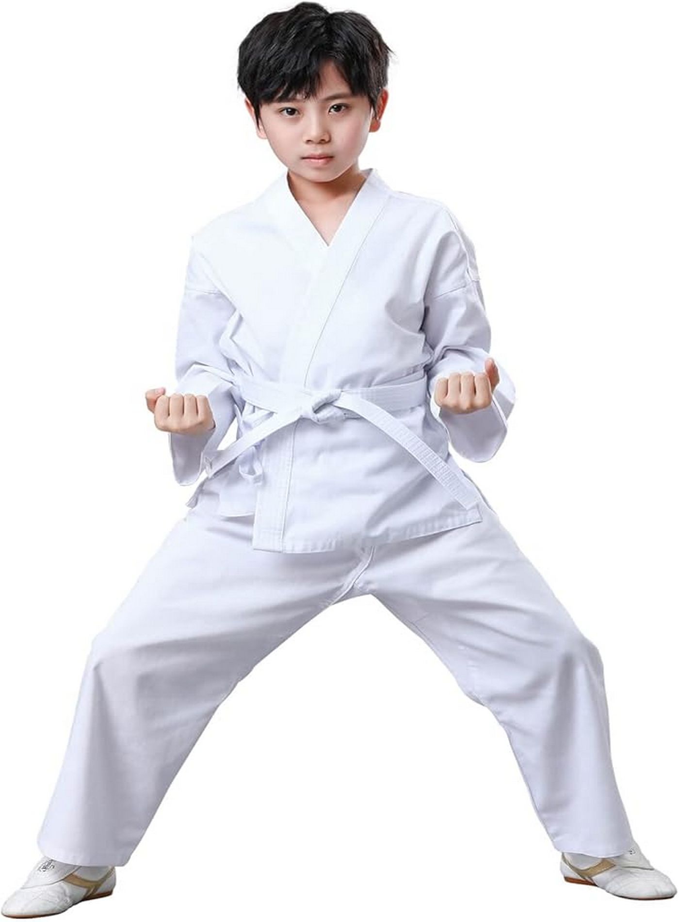 -Material:35% Cotton and 65% Polyester .Its advantages hygroscopic and breathable. Not easy shrink, not easy wrinkle, beautiful appearance. -Size for Kids and Adult: This great lightweight Karate Uniform is equipped with elastic waist and traditional drawstring pants. -Easy Clean:This martial arts gi is easy to clean, machine or hand washable. -Package Include:Karate Uniform Complete with White Jacket, White Belt and White Pants .Can also be used for Akido